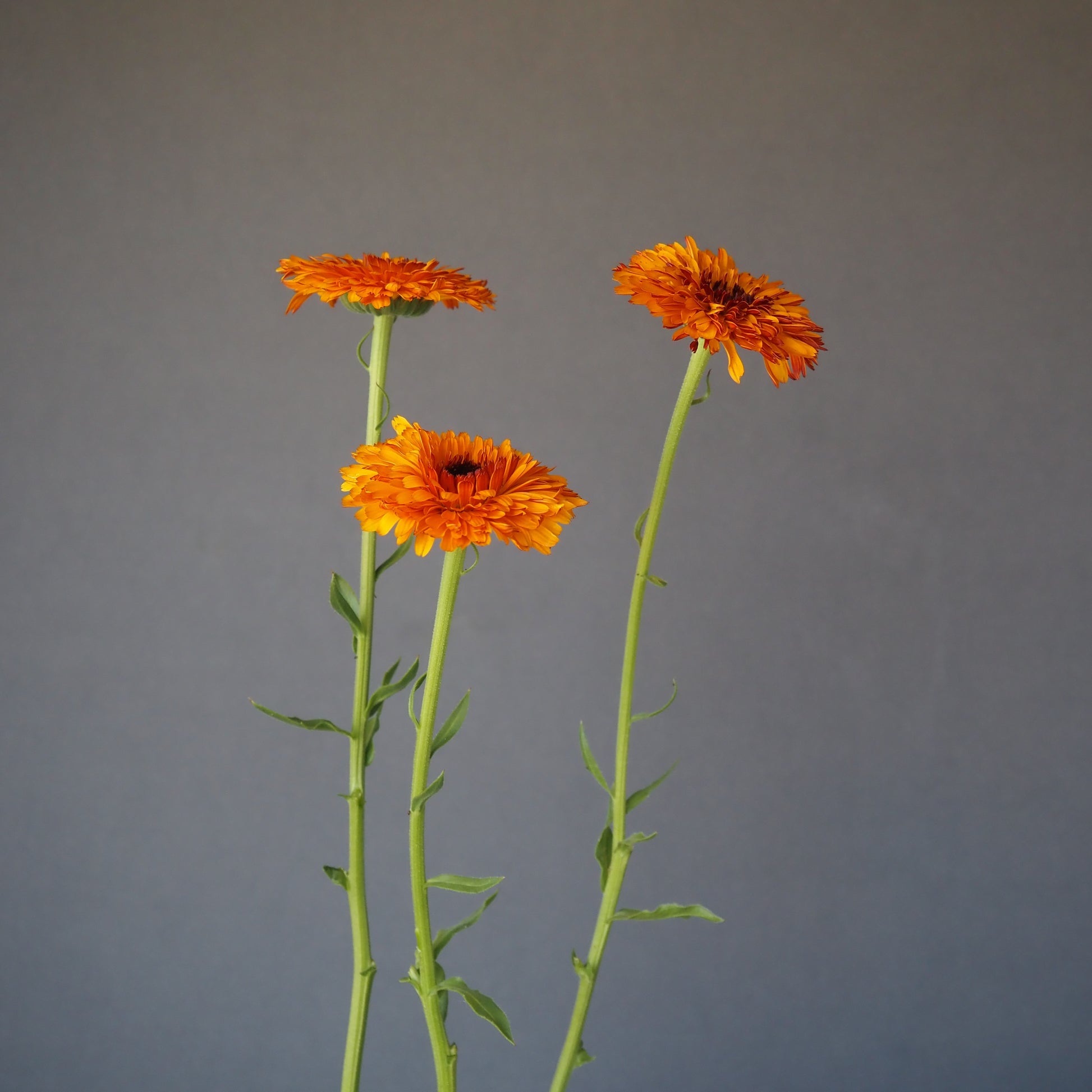 The richest orange of all the calendulas! A super saturated pumpkin orange with burnt red coloring on the back and tip of the petals. Very large double flowers with a velvety brown center. An easy plant to grow and can be used as a cut flower as it has a very thick stem for cutting compared to other calendulas. I think it’s best in a garden or veggie garden though. Calendulas have large seeds with a fun shape making them a great choice for children to plant as well.