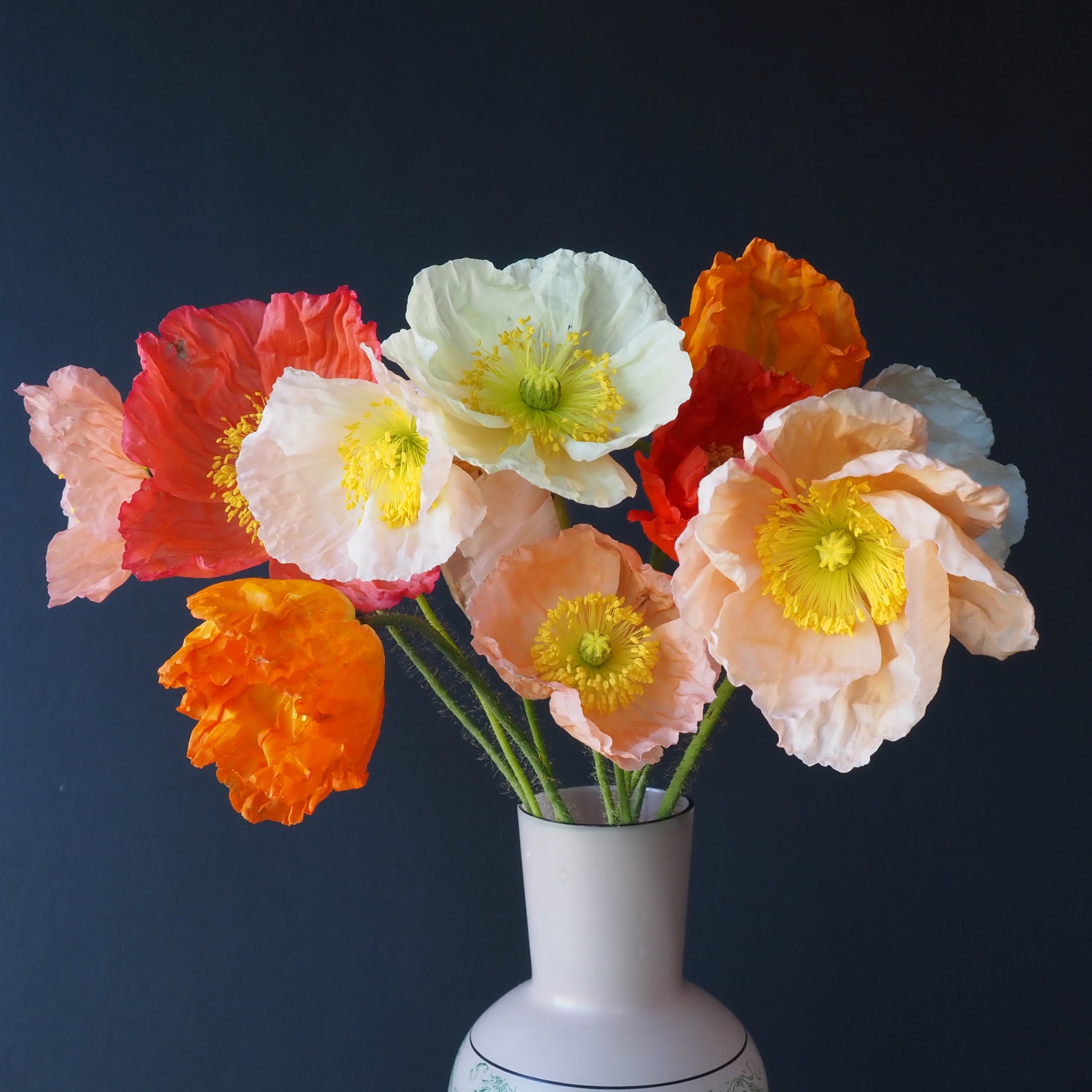 This Icelandic poppy is exquisite with its papery crinkled blooms in such unique colors, some of which are hard to find elsewhere. Pale pink, apricot, salmon, lemon yellow, fruity orange, cream and lipstick red. It sounds like too much but, in fact, this medley looks fantastic! If harvested correctly, these make a very special cut flower in the late Spring. Quite luxurious. Likes sun or part shade.