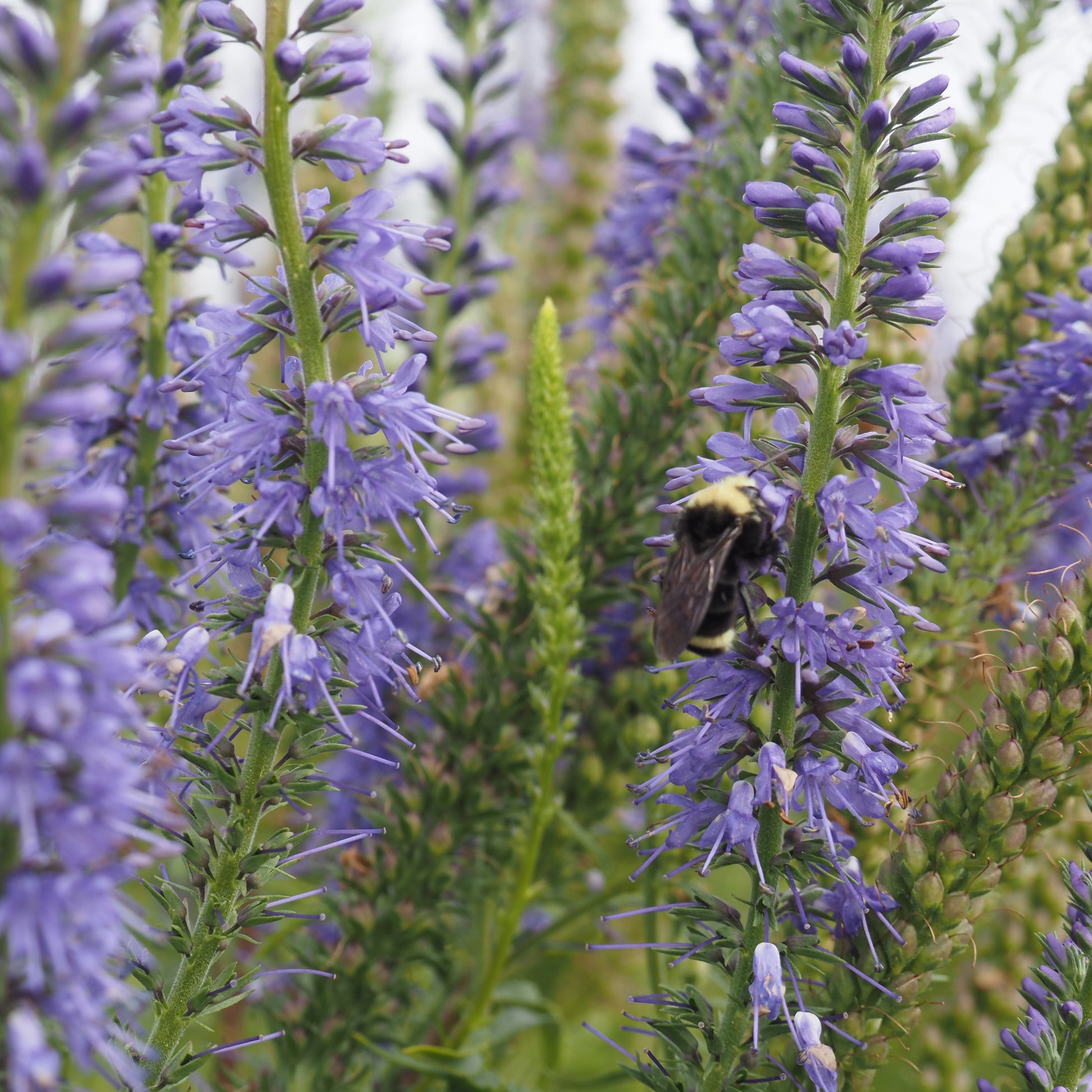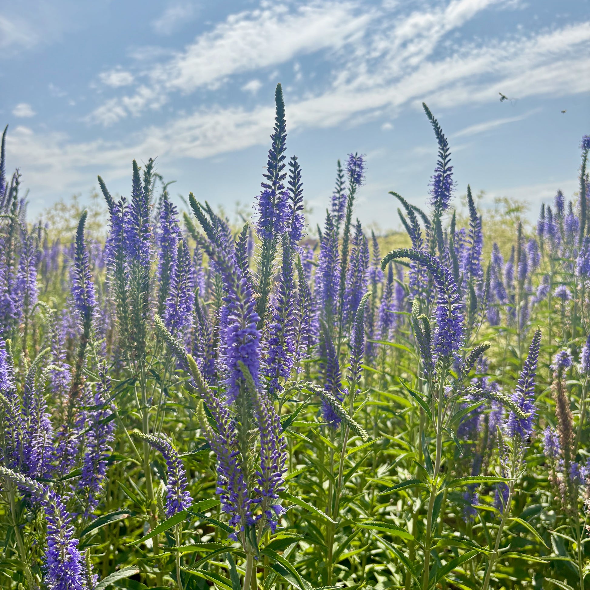 I had never grown Veronica spicata at a large scale until this year and I absolutely loved it. With a very long bloom period and lengthy blue flower spires, it’s a great garden plant and/or cut flower. Requires no staking despite its height. (A solid 4.5’ at our farm) It was one of our top plants for pollinators, sometimes with 3-4 bumblebees on each spire. Plant this with Mignonette and Phacelia and you might have quite the show of beneficial insects!. Low water needs and tolerant of lean soil.